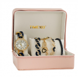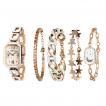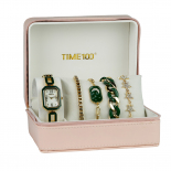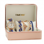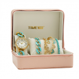 时光一百(TIME100)女表小表盘简约防水女士腕表套装女手链手表七夕礼物送女友W50888L钢色