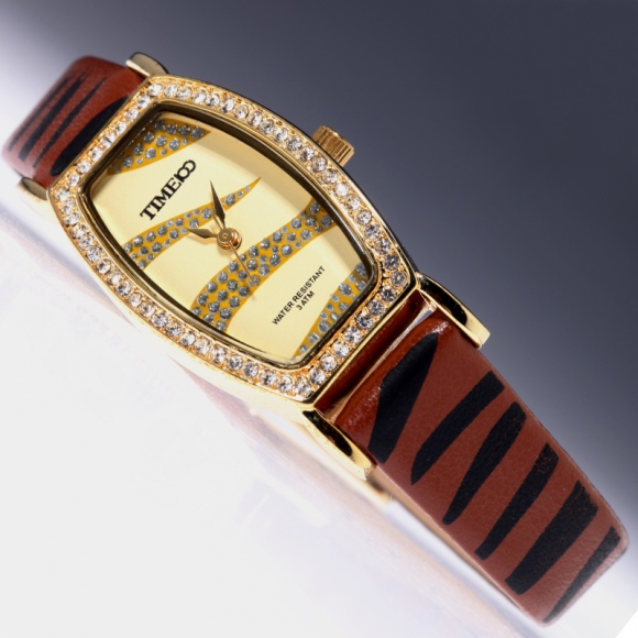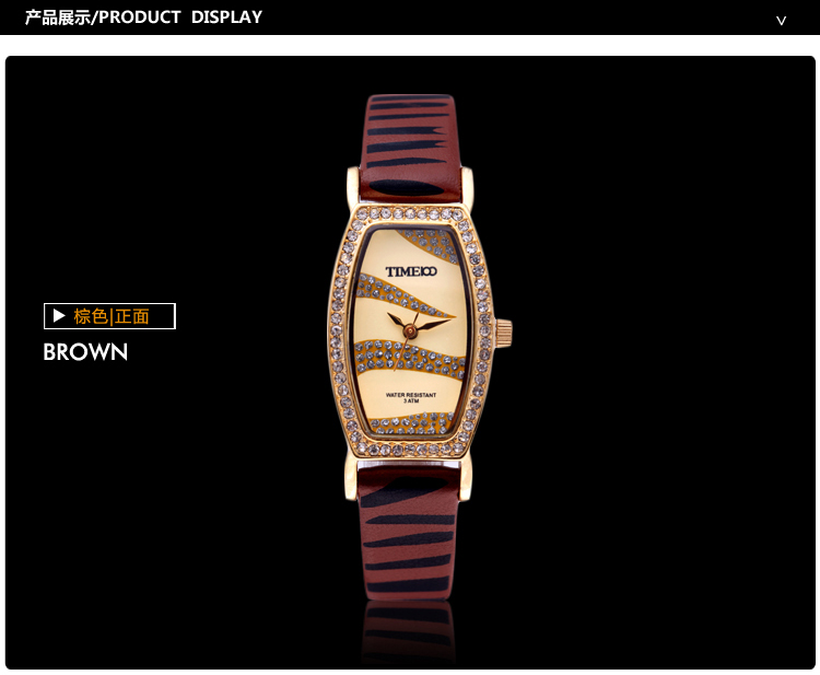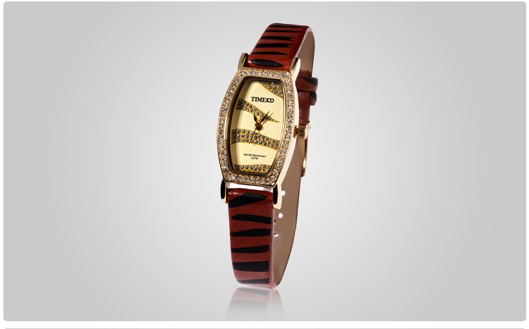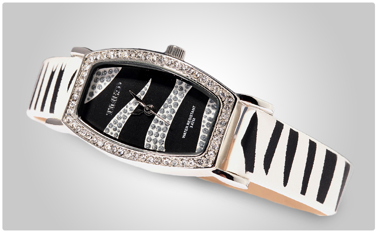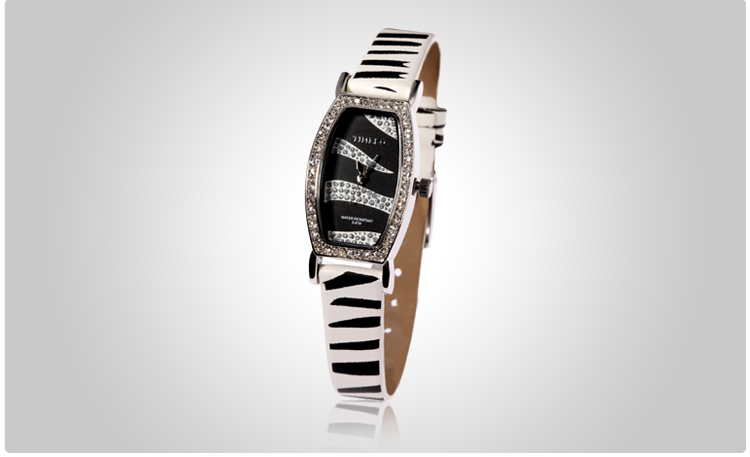 豹纹皮带镶钻闪粉面个性女表 (全国包邮)