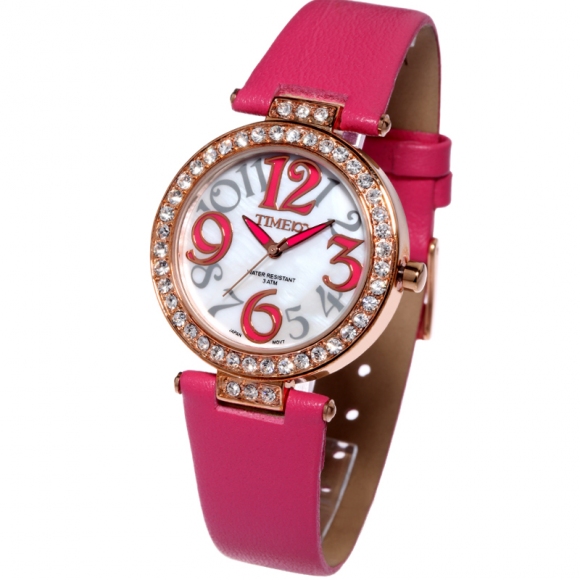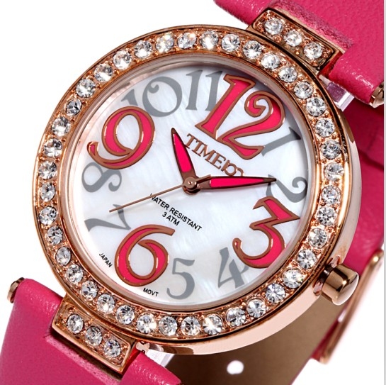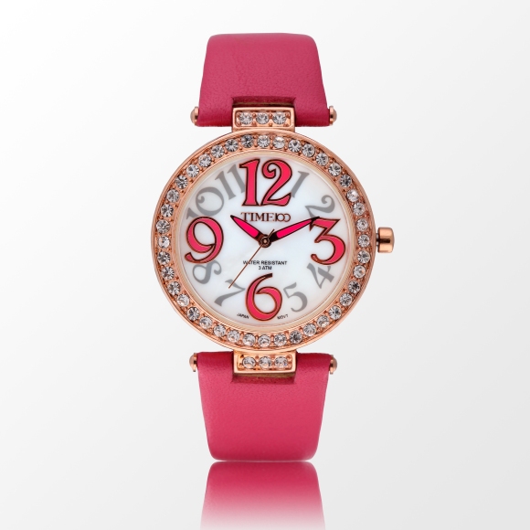 时光一百 时尚简约闪钻真皮石英男表W80097G