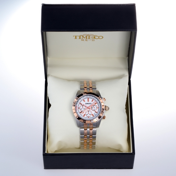 TIME100时光一百 经典简约商务日历钢带情侣女表W80068L