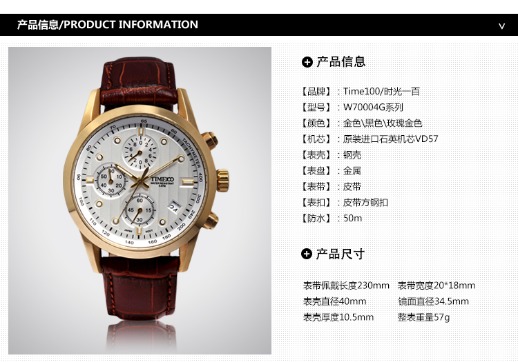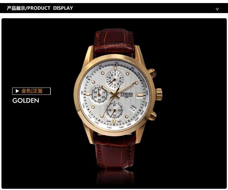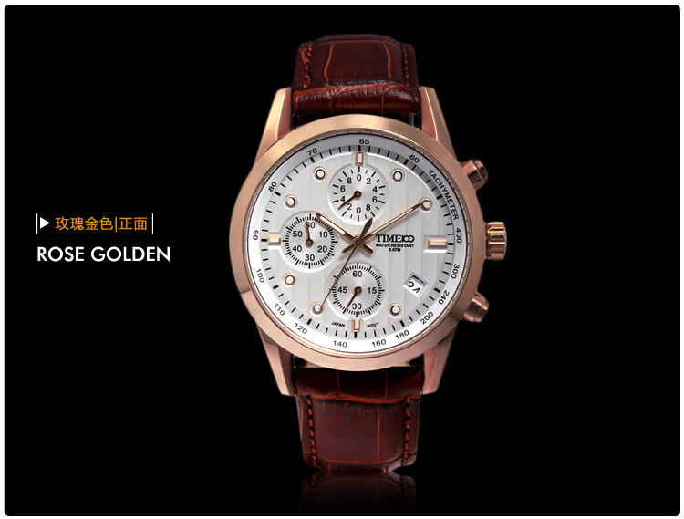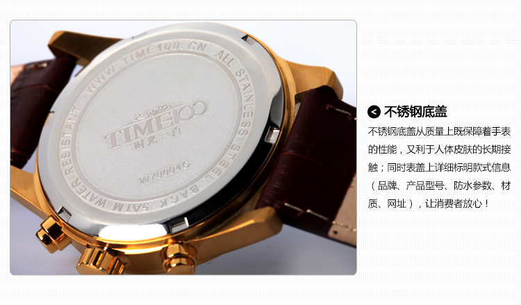 100米防水 时尚多功能真皮石英男表W70104G