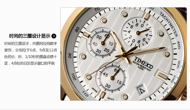 时尚休闲三眼皮带男表 (全国包邮)