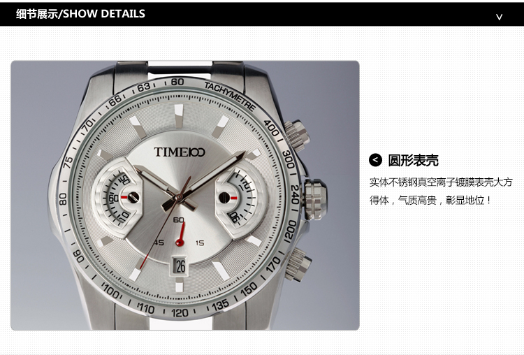 TIME100时光一百 古典罗马刻度多功能真皮石英男表W80060G