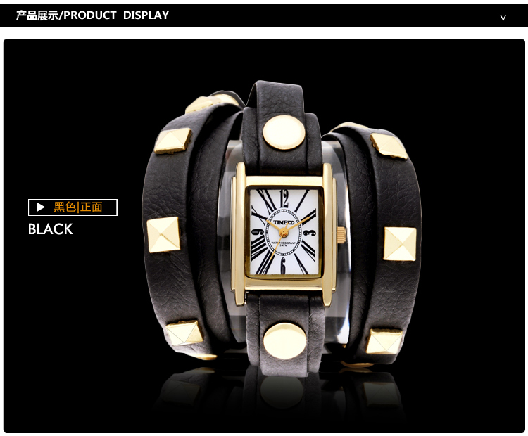 欧美流行钮钉长皮带女士手表 (全国包邮)