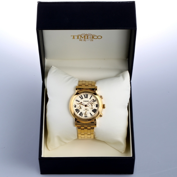 TIME100时光一百 古典罗马刻度多功能真皮石英男表W80060G