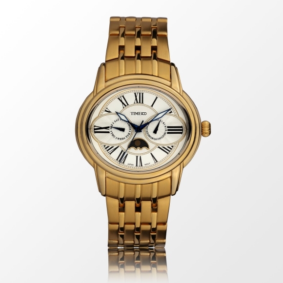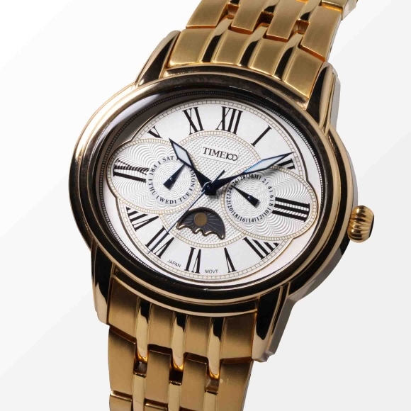 TIME100时光一百 古典罗马刻度多功能真皮石英男表W80060G