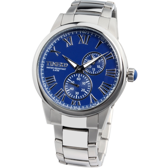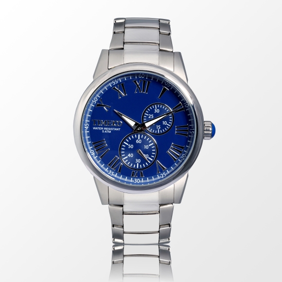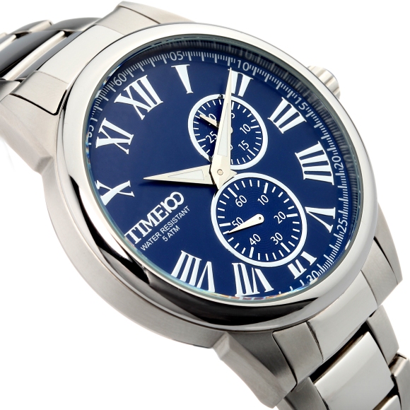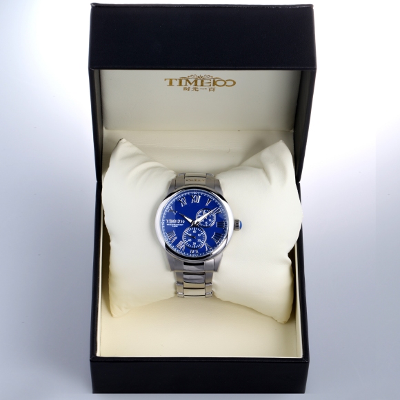TIME100时光一百 简约复古立体水波纹日历钢带情侣男表W80070G