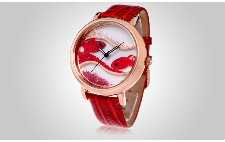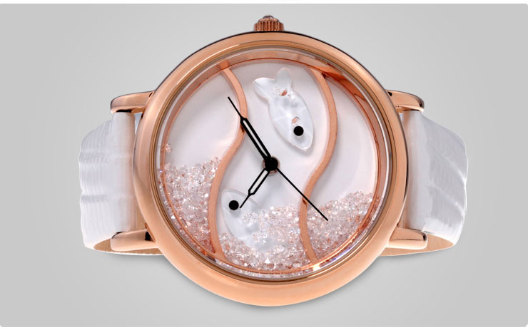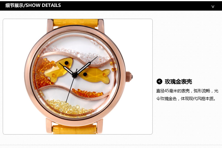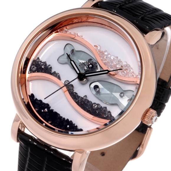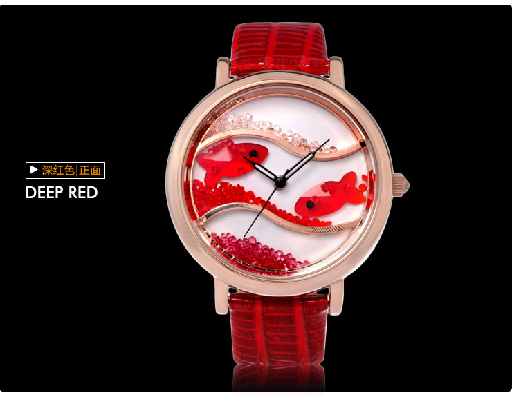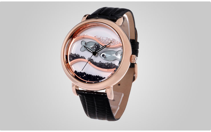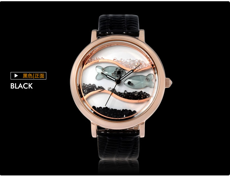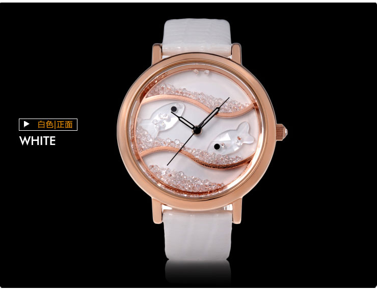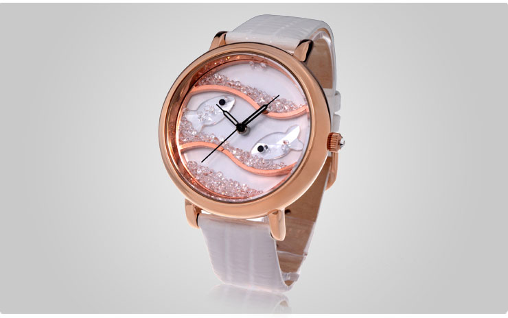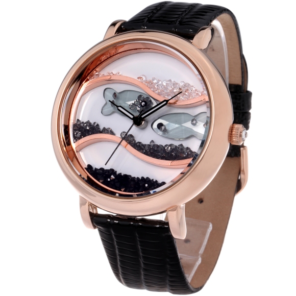 闪钻海洋水晶鱼真皮防水表 (全国包邮)