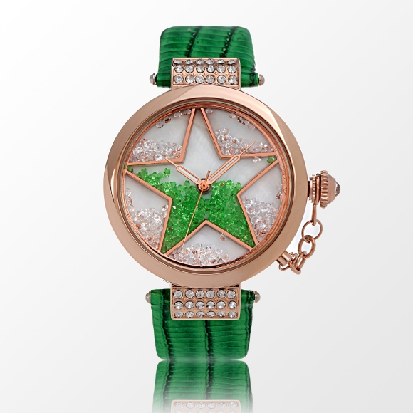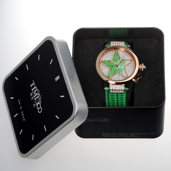 时光一百 灵动闪钻漆皮皮带石英女表W80106L