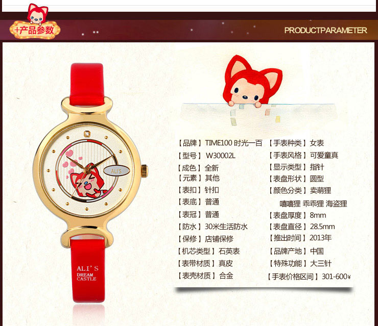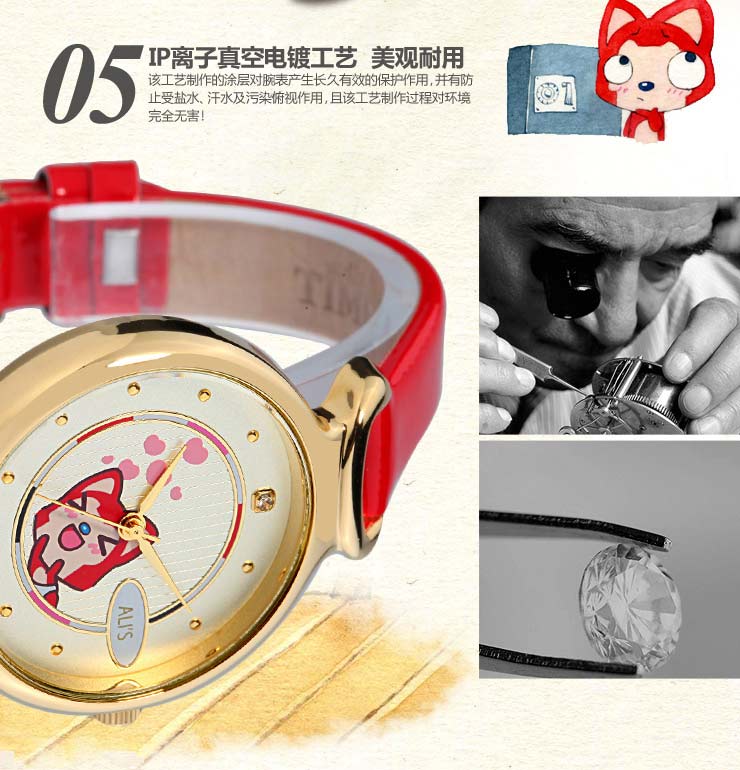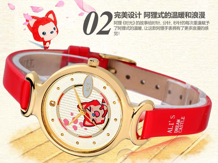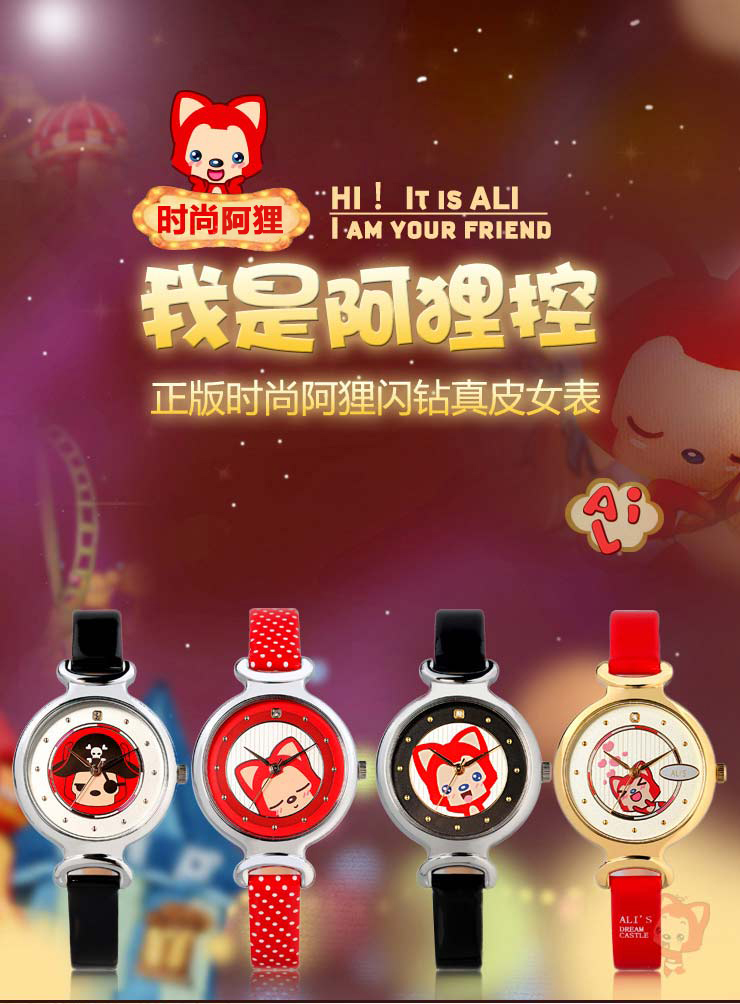 阿狸青春系列时尚亮光漆皮闪钻女表 (全国包邮)
