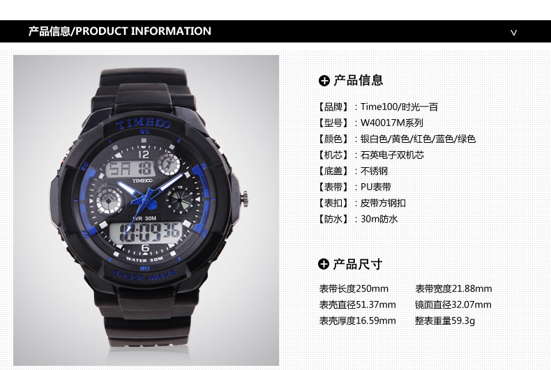 LED双显多功能指针运动电子表W40004G