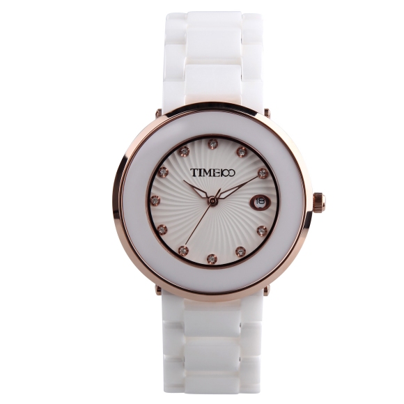 时尚圆形闪钻日历陶瓷女表 (全国包邮)