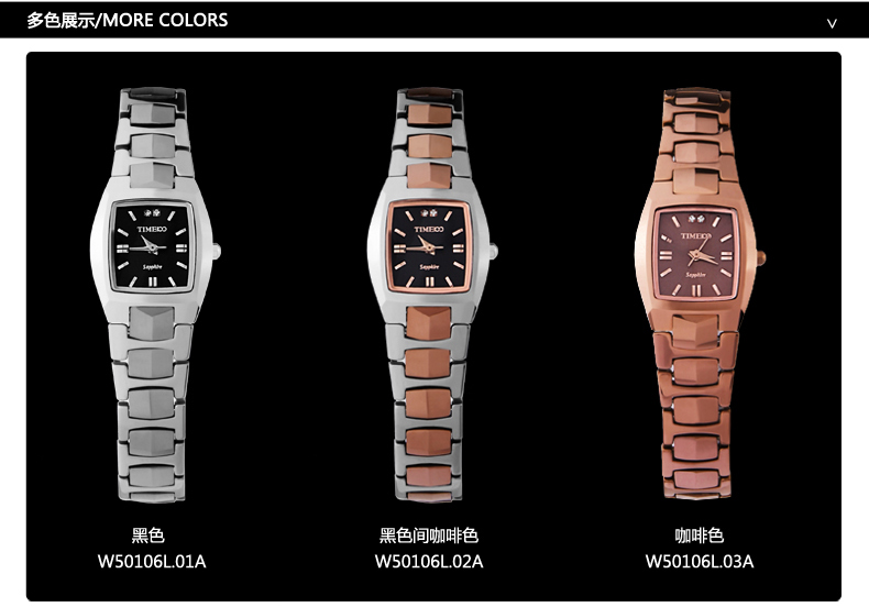 当前位置:首页 > 时尚方形正品钨钢女士手表防水石英表W50106L