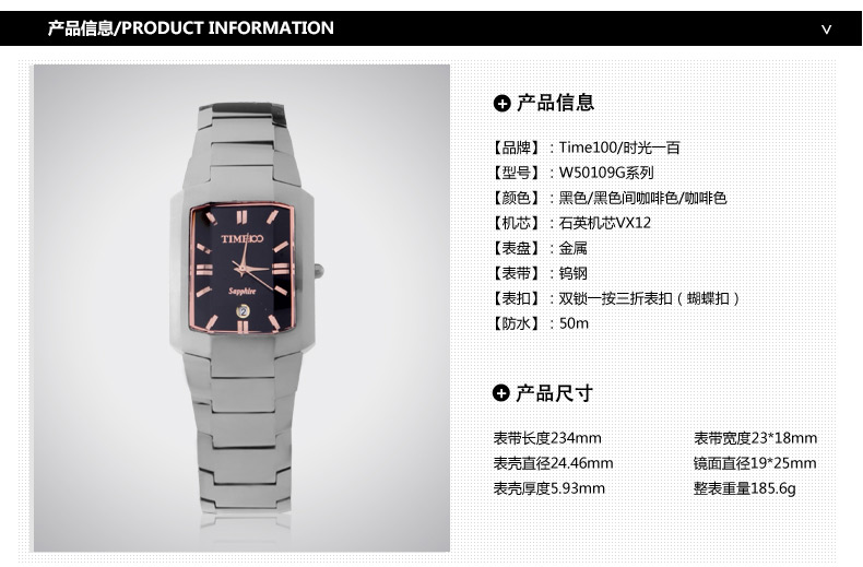 当前位置:首页 > 时尚方形正品钨钢男士手表防水石英表W50109G