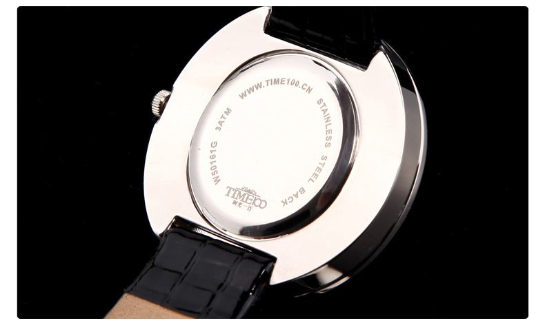 时光一百 简约复古灵动闪钻真皮女表W50277L
