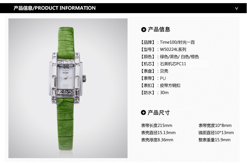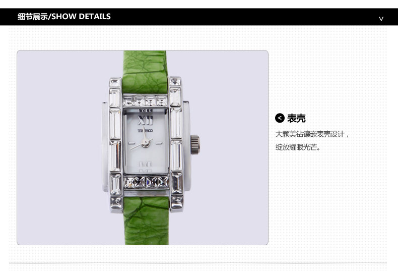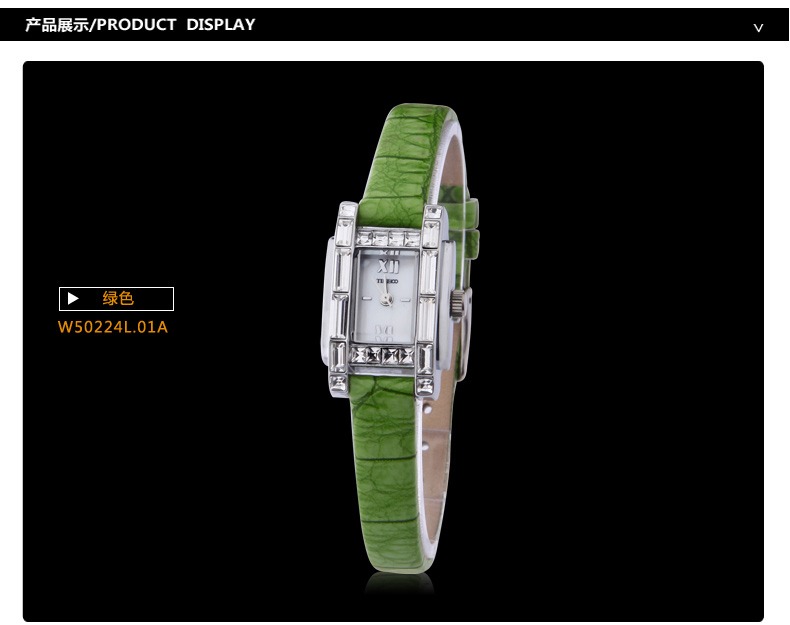 当前位置:首页 > 时尚优雅方形真皮镶钻罗马刻度石英女表W50224L