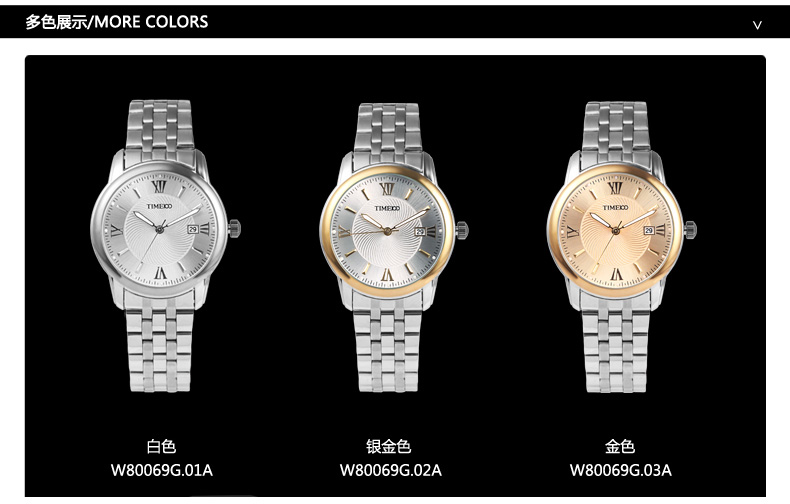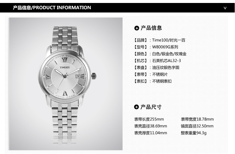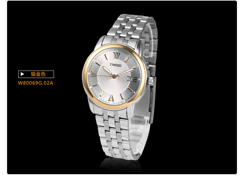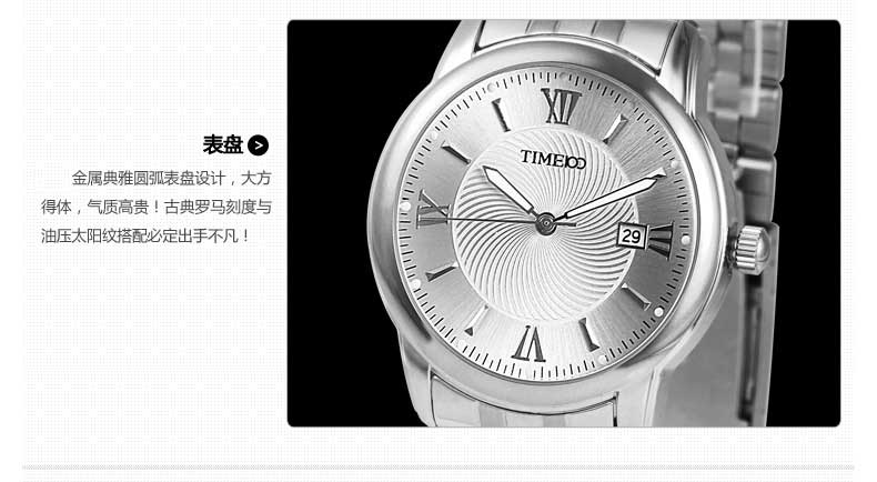 TIME100时光一百 简约复古罗马刻度日历钢带情侣男表 全国包邮