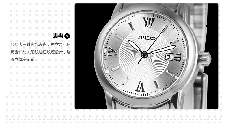TIME100时光一百 简约复古罗马刻度日历钢带情侣女表 全国包邮