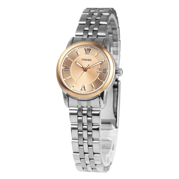 TIME100时光一百 简约复古罗马刻度日历钢带情侣女表 全国包邮