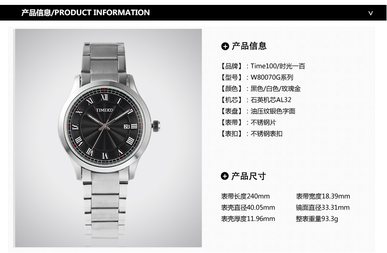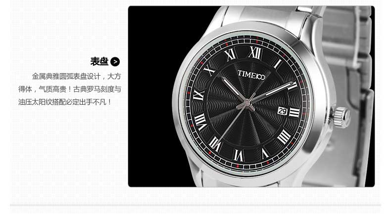 TIME100时光一百 简约复古立体水波纹日历钢带情侣男表 全国包邮