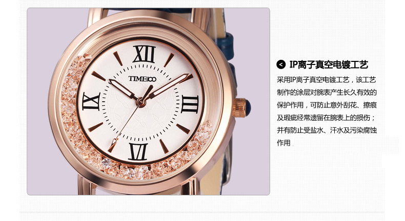 时光一百 简约复古灵动闪钻真皮女表 全国包邮
