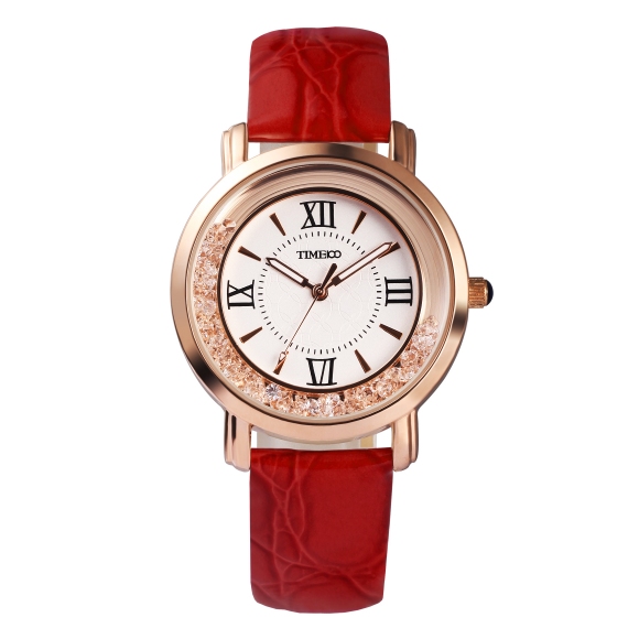 时光一百 简约复古灵动闪钻真皮女表 全国包邮