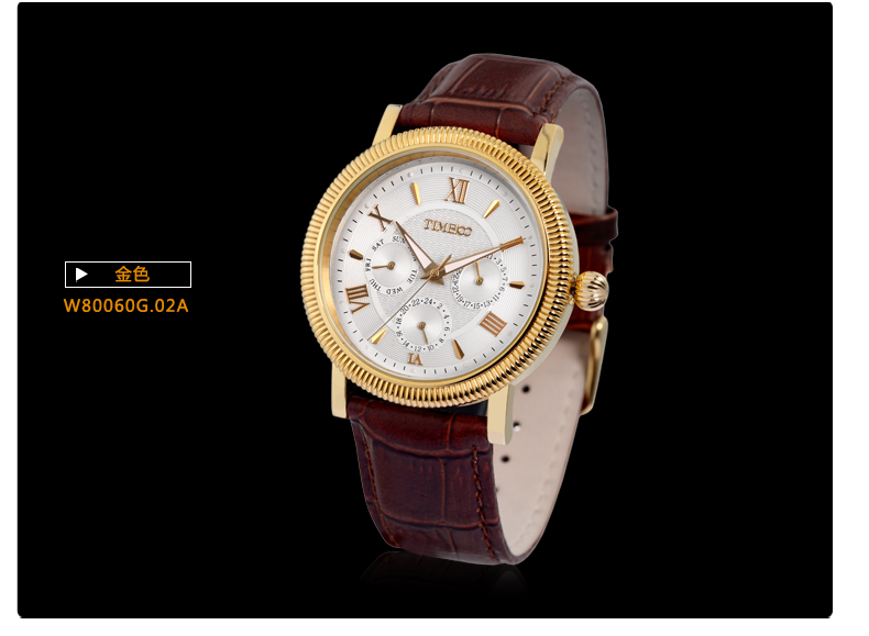 TIME100时光一百 古典罗马刻度多功能真皮石英男表 全国包邮