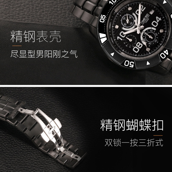 100米防水 时尚多功能精钢石英男表 (全国包邮)