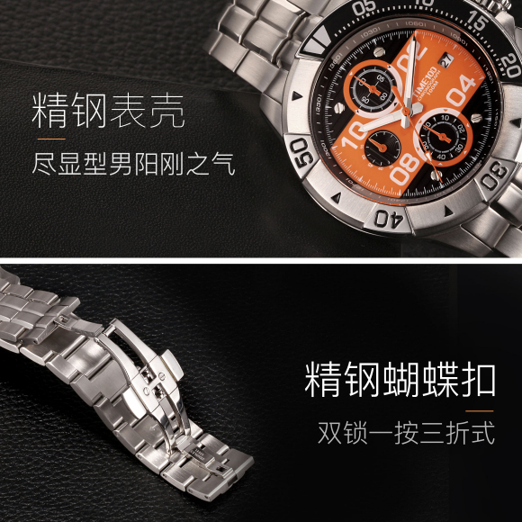 100米防水 时尚多功能精钢石英男表 (全国包邮)