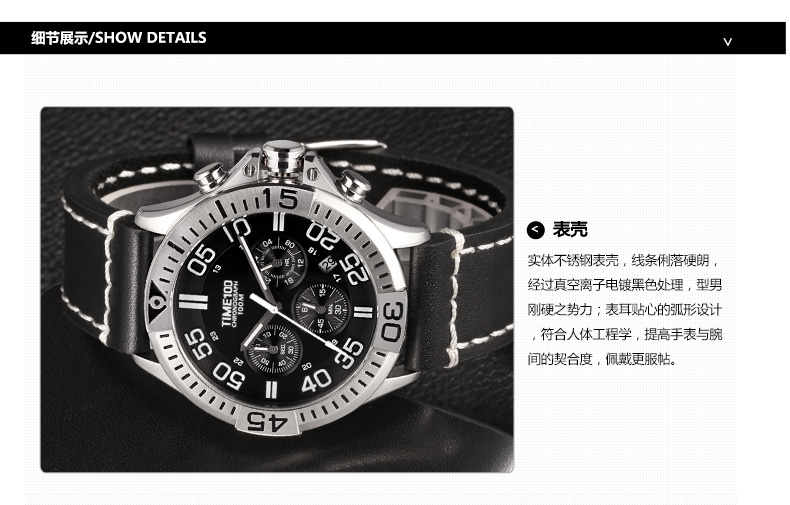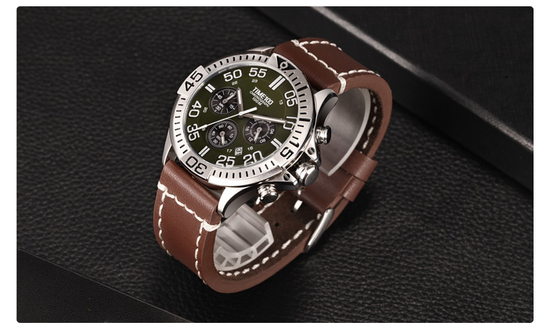 100米防水 时尚多功能真皮石英男表 (全国包邮)