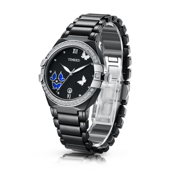 复古甜美蝴蝶水钻陶瓷女士腕表