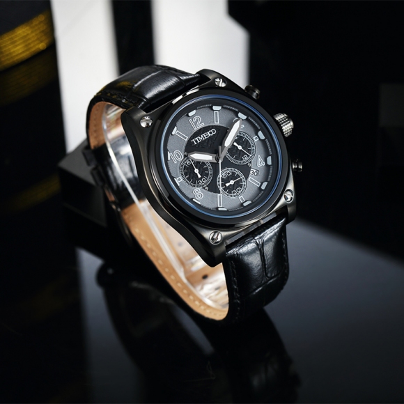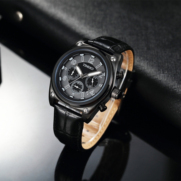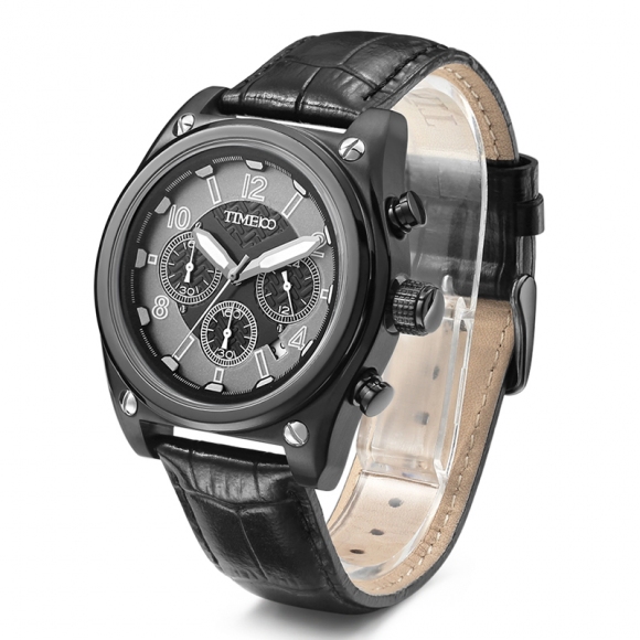 TIME100时光一百 古典罗马刻度多功能真皮石英男表W80060G