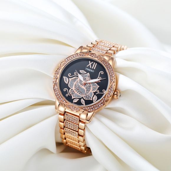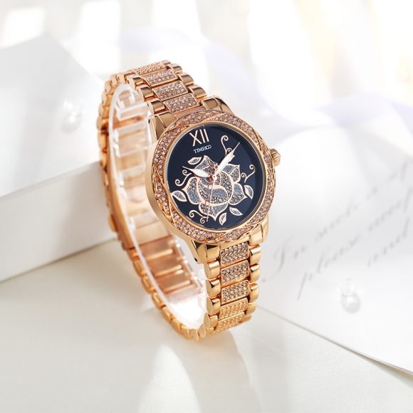 甜美个性写意亮钻花朵女士腕表