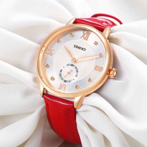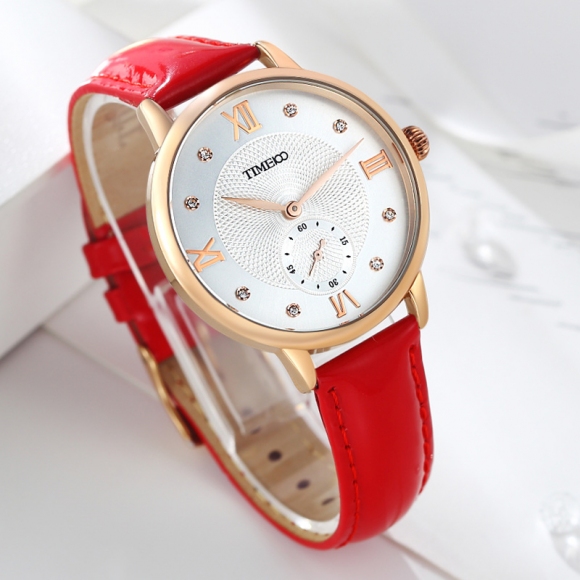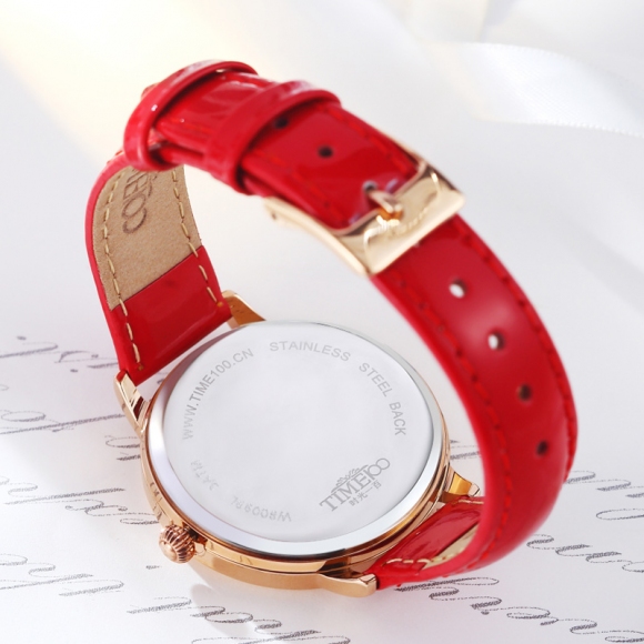 时光一百 时尚复古闪钻亮光真皮石英女表