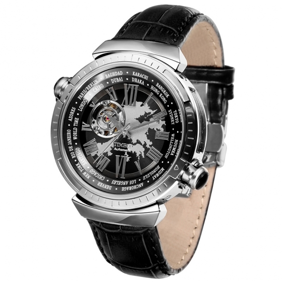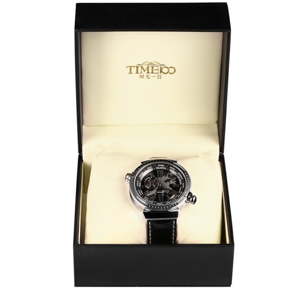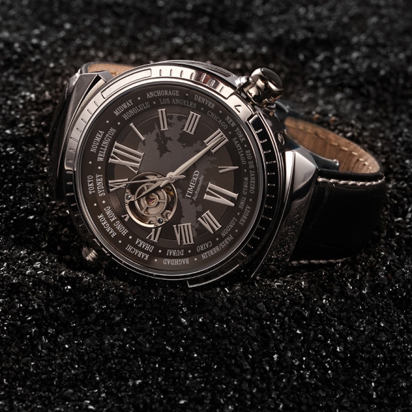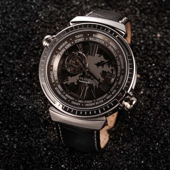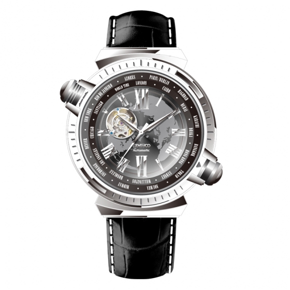 先机系列 世界时区镂空全自动真皮机械表男表 香港钟表设计大赛获奖作品,巴塞尔参展手表