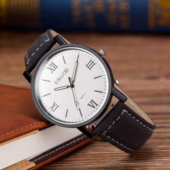 时光一百Smileyes系列 商务休闲罗马数字皮带石英男表