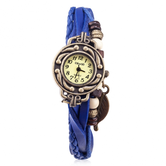 时光一百Smileyes系列 复古编织皮手链石英女表
