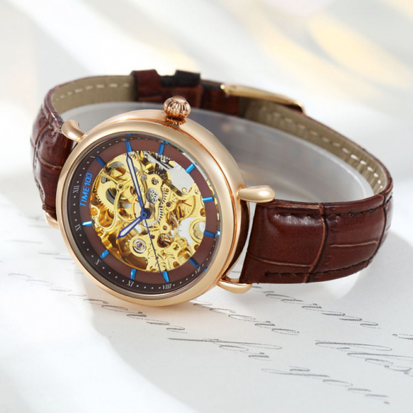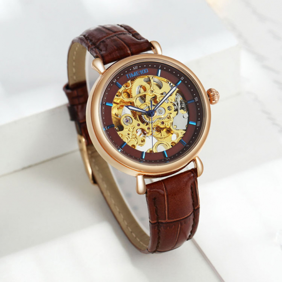 时光一百 双面镂空皮带自动机械女表