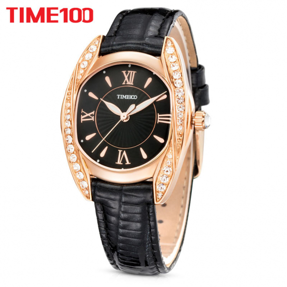 时光一百 灵动闪钻漆皮皮带石英女表