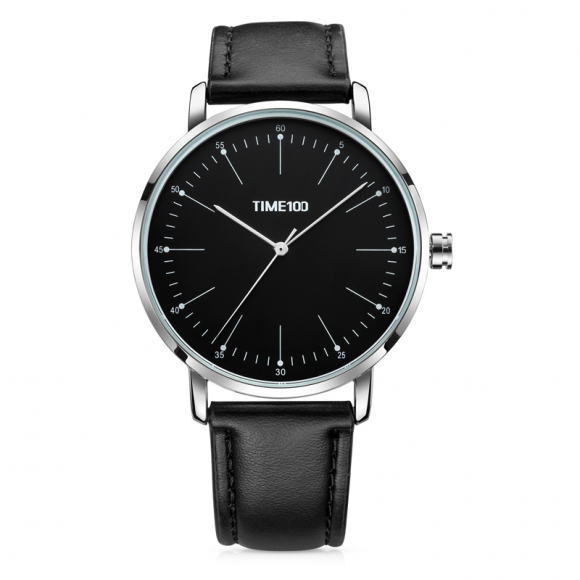 时光一百 简约刻度薄款皮带石英男表