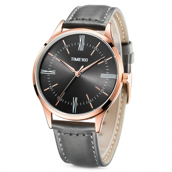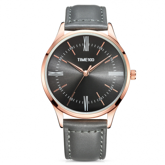 时光一百 罗马数字薄款皮带石英男表