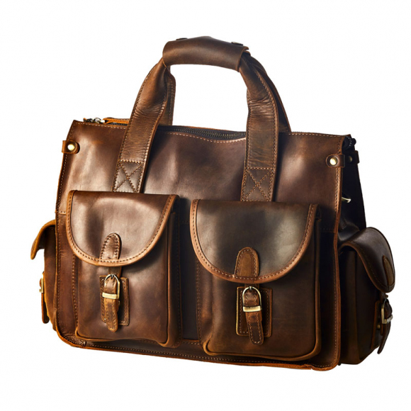 魔术传奇MagoMaga 商务疯马牛皮真皮手提包斜挎包男包(大包)