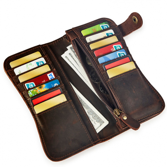 魔术传奇MagoMaga 疯马牛皮真皮长款男士钱包(小包)