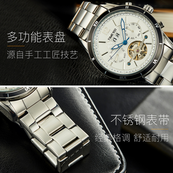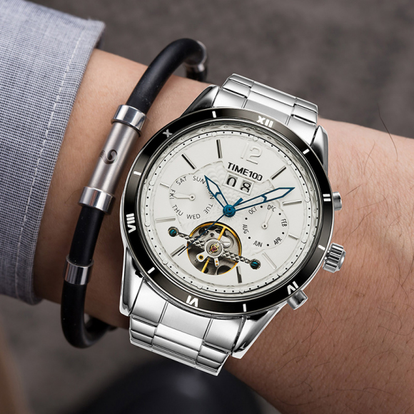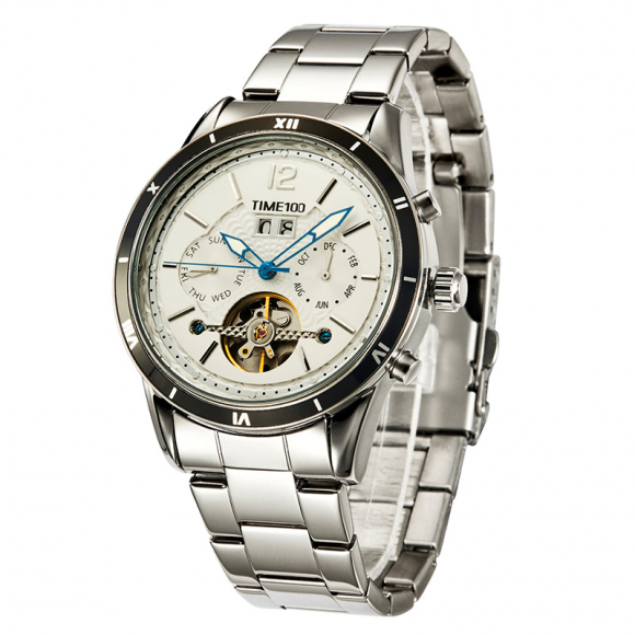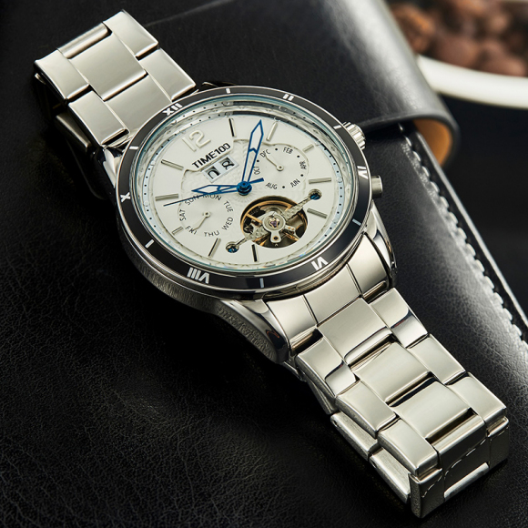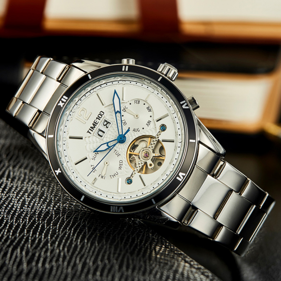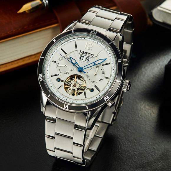 时光一百男表防水自动机械表钢带男士手表潮流休闲腕表