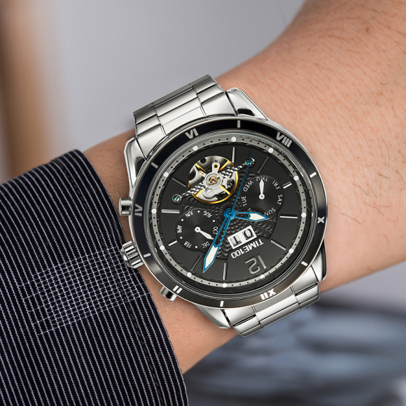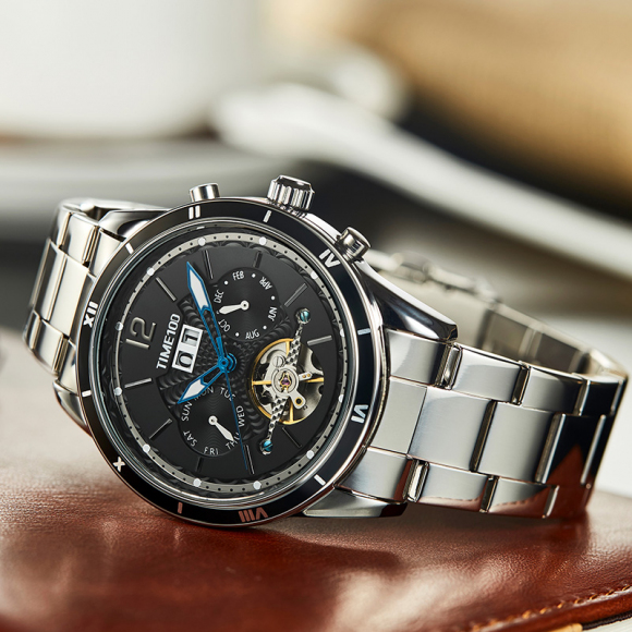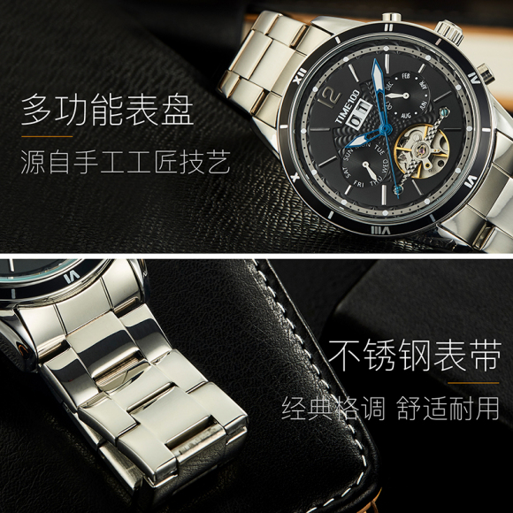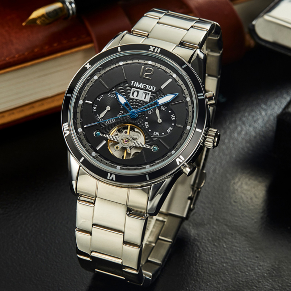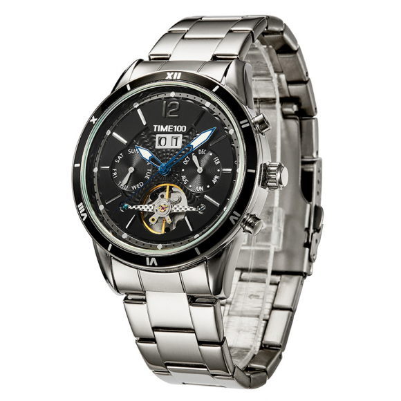 时光一百男表防水自动机械表钢带男士手表潮流休闲腕表