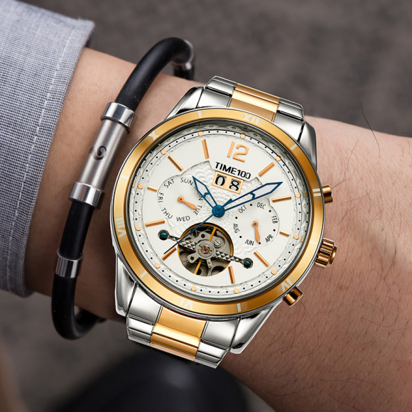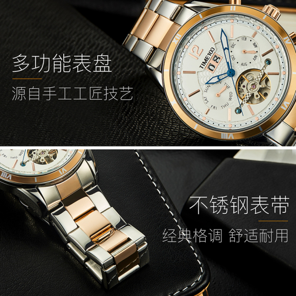 时光一百男表防水自动机械表钢带男士手表潮流休闲腕表