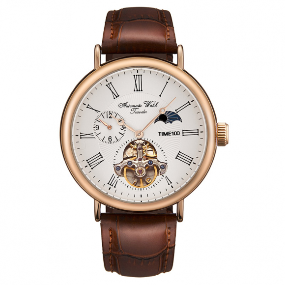 当前位置:首页 > 时尚复古罗马刻度简约风飞轮机芯多功能月相两地时男表牛皮圆盘防水机械表W60164G