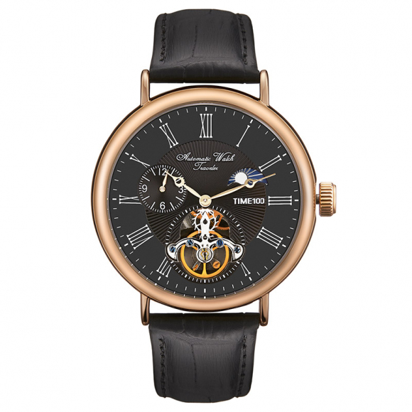时光一百 太极飞轮月相镂空皮带机械表W60012M