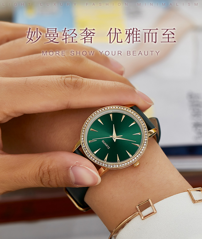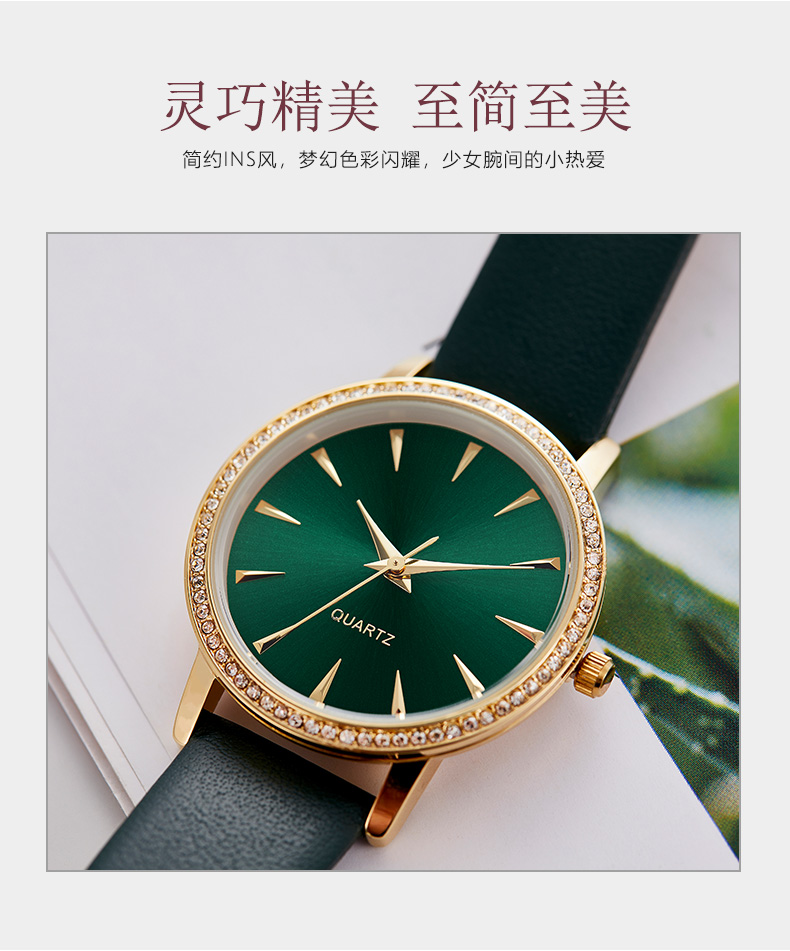 手链表轻奢小众设计ins风复古简约气质森系切面玻璃手表女W80323L绿色