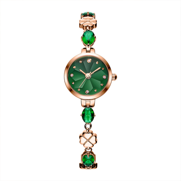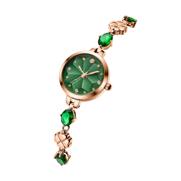 手链表轻奢小众设计ins风复古简约气质森系切面玻璃手表女W80323L绿色